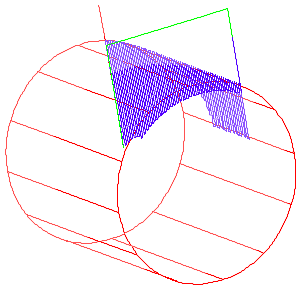 A configuração Lateral 3D projeta a curva de fronteira na superfície e então corta de um lado ou do outro conforme mostrado nessa imagem.