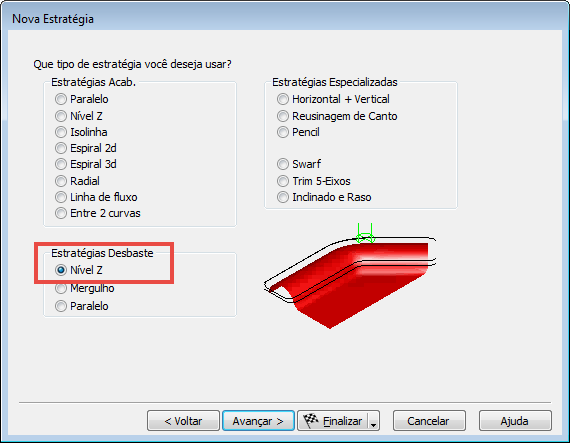 - Sob Estratégias Desbaste, selecione Nível Z, e então clique em Avançar.
