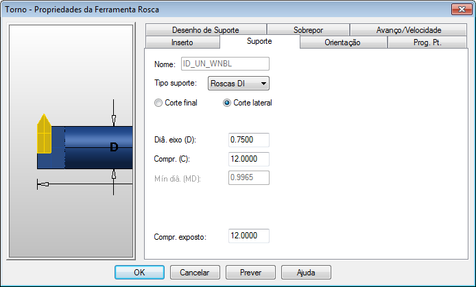 Comprimento exposto — É a porção da ferramenta que se projeta do suporte quando o suporte é simulado.