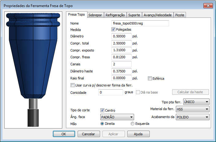 Para exibir o diálogo de Propriedades da Ferramenta: