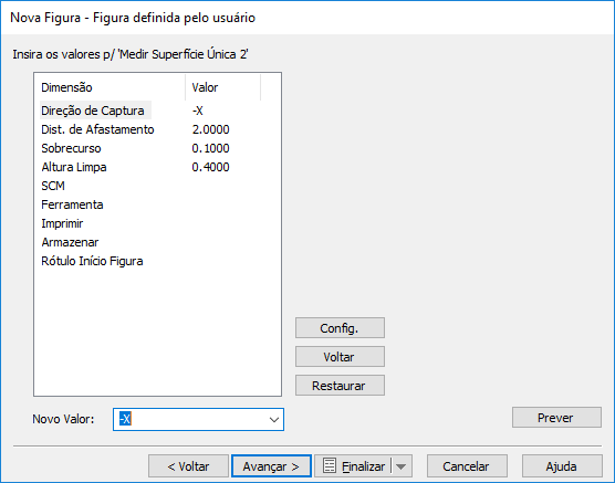 A figura Superfície Única captura um único ponto ao longo da direção especificada. A posição da figura precisa ser no ponto onde espera-se que o apalpador toque a peça.