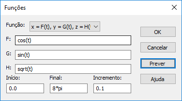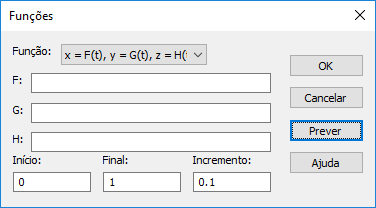 Na lista Função, selecione x = F(t), y = G(t), z = H(t).
