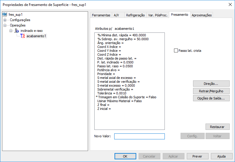 Z final — Insira a distância ao longo do eixo Z abaixo da qual a operação não fresa.