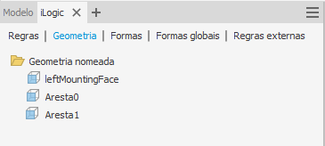 O nome atribuído é exibido na guia Geometria do navegador do iLogic e na geometria da janela de desenho (somente arquivos de peça).
