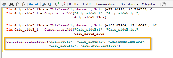 Nota: Não há nenhuma associação entre o nome atribuído e o Editor de regras. Se alterar um nome atribuído em um arquivo de peça, você precisará recriar a regra ou alterar manualmente o nome atribuído no Editor de regras.