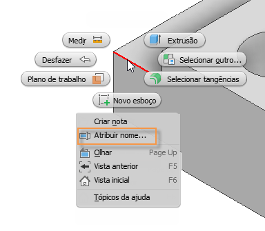 - Em um arquivo de peça, clique com o botão direito do mouse na geometria que está ou será restringida a outra peça e, em seguida, selecione Atribuir nome.