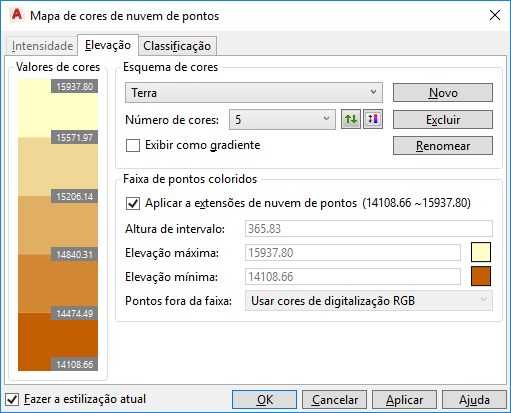 Nota: Para a Intensidade, Elevação e Classificação, a estilização tem como base os esquemas de cores atribuídos na caixa de diálogo