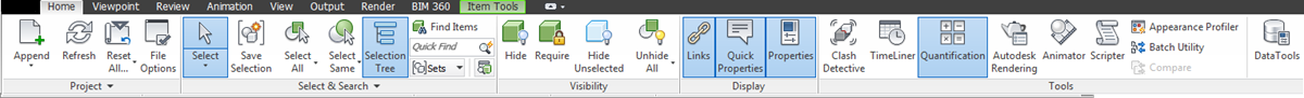 Algumas das guias são contextuais. Quando alguns comandos são executados, uma guia contextual especial da faixa de opções é exibida, em vez de uma barra de ferramentas ou caixa de diálogo. Por exemplo, assim que você começa a selecionar itens na Scene View, a guia Item Tools anteriormente oculta é exibida. Quando nada é selecionado, ela é ocultada novamente.