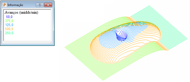 Quando um percurso possui avanços variáveis, clicar na lâmpada (próxima ao percurso) exibe um diálogo de informação que mostra uma chave para as várias cores: