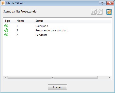 Clique em qualquer um desses botões de Fila de Cálculo para exibir o diálogo Fila de Cálculo.