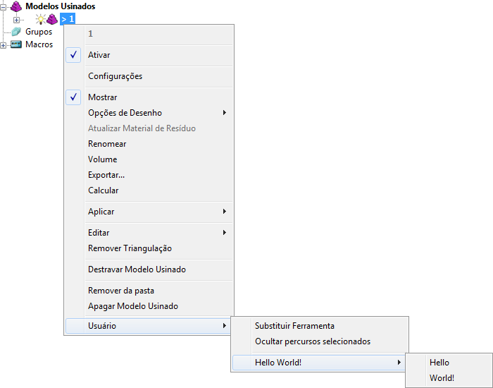 Por exemplo, para criar este exemplo de submenu para uma entidade individual de modelo usinado: