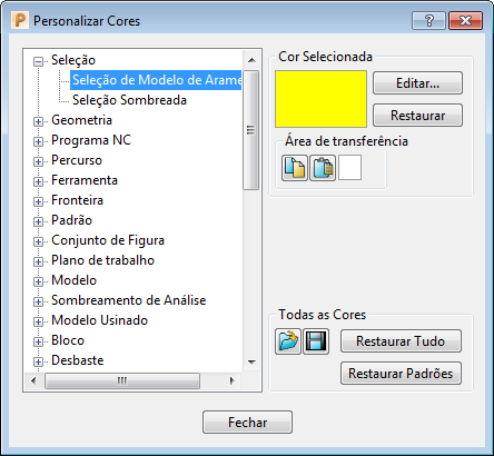 Restaurar — Reverte sua seleção de cor para o que era quando o PowerMill foi iniciado.