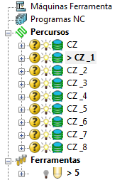 Se você selecionar Ordem de Grupo de Percurso e Ordem de Troca de Ferramenta, então os percursos são ordenados por uso da ferramenta dentro de um grupo de percurso.