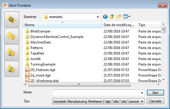 - Selecione guia Fronteira > painel Arquivo > Importar para exibir o diálogo Abrir Fronteira.