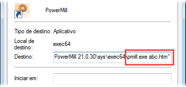 - Clique com o botão direito no ícone do PowerMill na área de trabalho e selecione Propriedades.