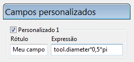- Insira tool.diameter*0.5*pi no campo Expressão.