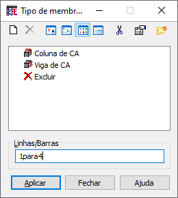 Use essa opção para selecionar e/ou definir tipos de membros de aço de estrutura. É possível acessar a opção: