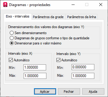 A seguinte caixa de diálogo é exibida após a guia Eixo – intervalos ser selecionada na caixa de diálogo Diagramas – propriedades.