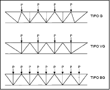 Existem três tipos principais de distribuição de carga de ponto para vigas-mestras: G, VG e BG, como mostrado na figura a seguir.