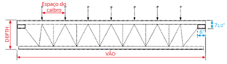 Uma viga-mestra é um vão simples, que suporta cargas concentradas igualmente espaçadas de caibros de aço de alma aberta. Essas cargas concentradas atuam nos pontos do painel da viga-mestra.