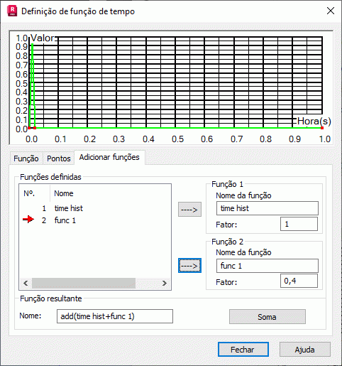 Nota: O valor da função resultante é interpolado nos pontos com abscissa comum. Cada uma das funções definidas pode ser multiplicada por um coeficiente definido pelo usuário.