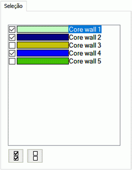 Selecione as paredes núcleo na lista para as quais os diagramas são exibidos. Os botões na parte inferior da guia Seleção permitem selecionar ou desmarcar todas as paredes núcleo.