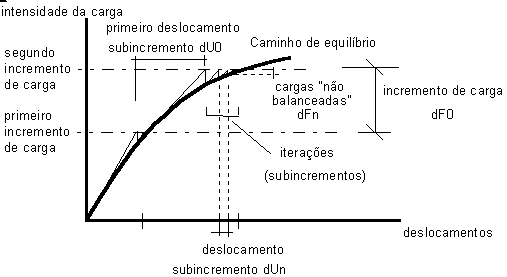 Com o método incremental, o vetor de carga à direita é dividido em incrementos iguais. Um incremento de carga consecutivo é aplicado à estrutura quando o estado de equilíbrio para o incremento anterior é alcançado. A norma de forças desequilibradas é especificada para cada etapa, permitindo o monitoramento das relações de força-deformação da estrutura.