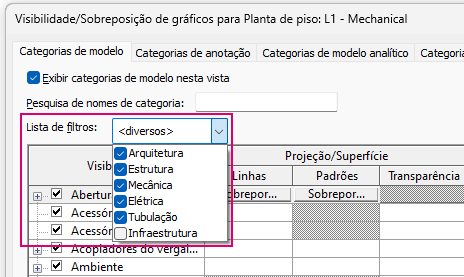 Com base no feedback dos clientes, os filtros de disciplina na caixa de diálogo Visibilidade/Sobreposição de gráficos foram atualizados.