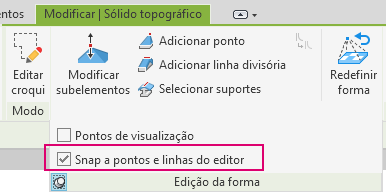 Os aprimoramentos no comportamento de snap ao trabalhar no modo de edição de forma permitem ignorar pontos internos e arestas e usar o valor Z de elementos como um ponto de snap.