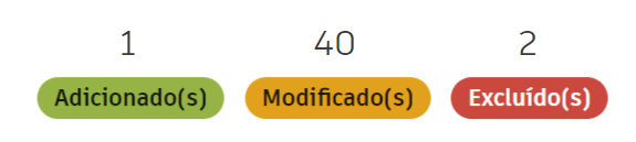A paleta exibe uma visão geral das alterações, classificadas em três categorias: objetos adicionados, modificados e excluídos. Um exemplo é mostrado abaixo: