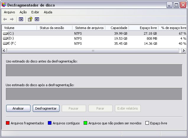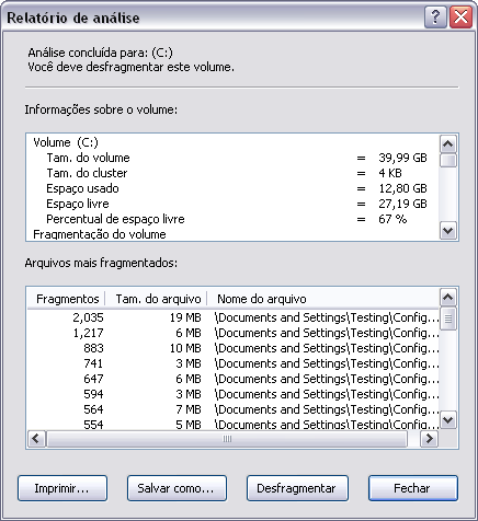 Selecione um disco (volume) e clique em Analisar. Em seguida à análise, um relatório é exibido.