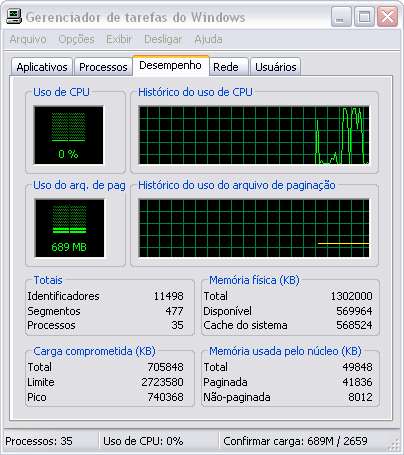 Se o Total de carga comprometida regularmente exceder a quantidade total de memória física, é provável que muitos dos programas e processos do servidor estejam usando o arquivo de troca com base em disco excessivamente. Usar o arquivo de troca é muito mais lento do que o uso de memória física. O Windows usa o arquivo de troca para muitas tarefas, portanto, um pequeno uso do arquivo de troca não irá causar problemas.