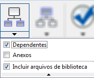 Seleciona automaticamente todos os objetos listados na caixa de diálogo Obter/Fazer check-out ou somente os objetos originais selecionados antes que a caixa de diálogo Obter/Fazer check-out seja iniciada. Essa é uma operação útil se você tiver ativado os botões Incluir filhos, Incluir pais ou Incluir vínculos e deseja uma forma rápida de selecionar os objetos relacionados para check-out. Dica: Passe o cursor do mouse sobre o ícone a qualquer momento para visualizar as configurações atuais. Clique na seta suspensa abaixo do botão Ativar para alterar suas configurações de seleção.