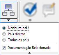 Alterna entre incluir arquivos pais específicos ou documentos relacionados para fazer check-out ou ignorar arquivos pais e documentos relacionados. Clique no botão Incluir pais para adicionar os tipos de arquivo pais específicos ou os documentos relacionados à lista de arquivos atual. Dica: Passe o cursor do mouse sobre o botão Incluir pais a qualquer momento para visualizar as configurações atuais. Clique na seta suspensa abaixo do botão Incluir pais para alterar quais tipos de pais, se houver, serão incluídos quando a operação Incluir pais estiver ligada. Desative o botão Incluir pais clicando novamente nele. Todas as configurações incluídas são ignoradas. |