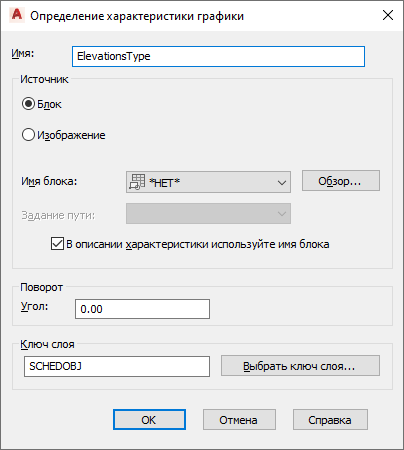 11. Если флажок "Использовать имя графики для описания" не установлен, введите описание новой характеристики: выберите пустое значение, введите текст описания и нажмите "ОК".