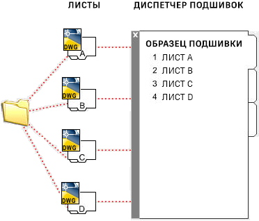 Можно управлять несколькими чертежами в виде подшивок с помощью диспетчера подшивок.