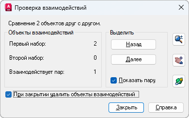 Выводит число взаимодействий между каждым набором объектов во время выполнения команды ВЗАИМОД.