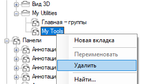 Новая вкладка (с именем "Новая вкладка") помещается внизу узла "Вкладки".