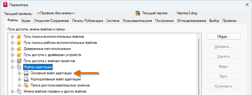 Изменения пользовательского профиля сохраняются в реестре Windows и переносятся в новую версию. Прим.: Отсутствует в AutoCAD LT.