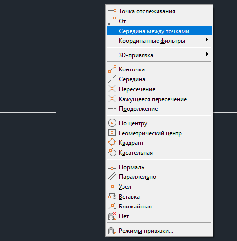 3. Нажав и удерживая клавишу SHIFT, щелкните правой кнопкой мыши для отображения контекстного меню «Объектная привязка».