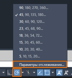 1. Щелкните раскрывающееся меню «Полярное отслеживание» и выберите «Параметры отслеживания».