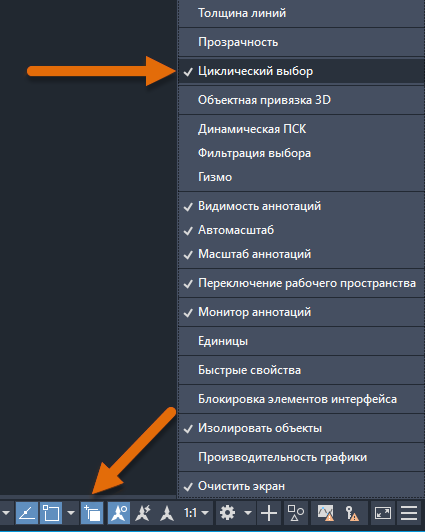 Даже если функция циклического выбора отключена в строке состояния, ее можно использовать, нажав комбинацию клавиш SHIFT + ПРОБЕЛ в качестве временной замены.