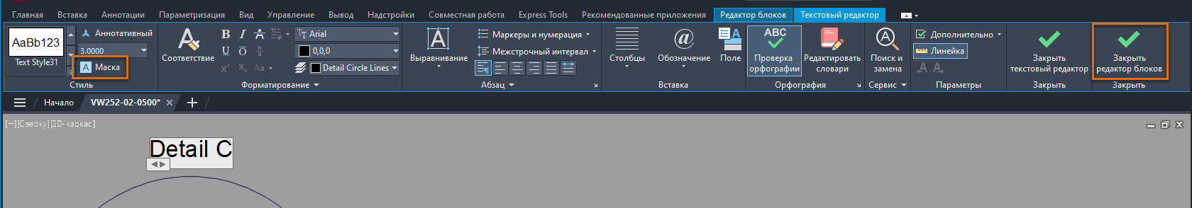 В окне сообщения «Блок — изменения не сохранены» нажмите кнопку «Сохранить изменения в 2DDetail1».