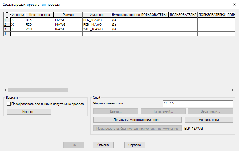 «Создать/редактировать тип провода». найти