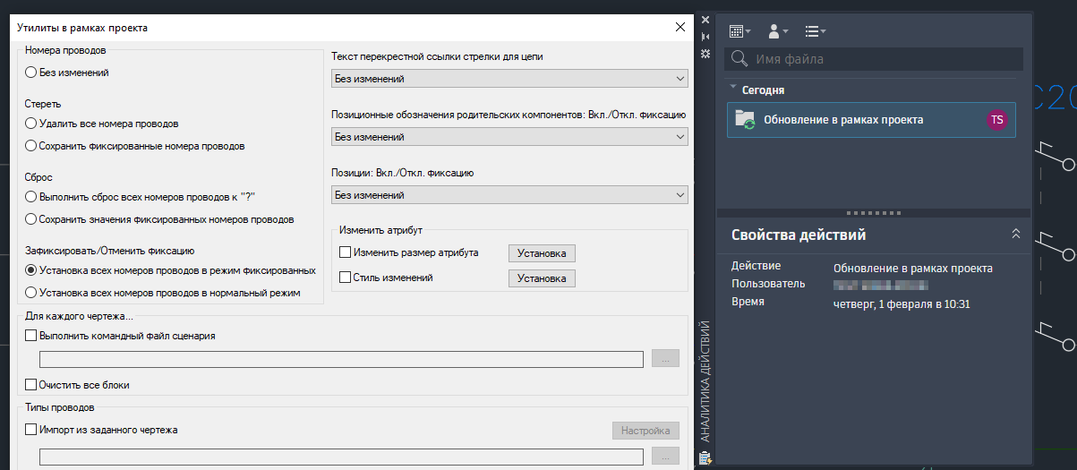 В AutoCAD Electrical 2025 функция «Аналитика действий» была усовершенствована для предоставления подробной информации о событиях, связанных с обновлениями в рамках проекта.