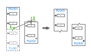 Команду "Разделить модуль ПЛК" особенно удобно применять для разделения модулей ПЛК после их создания или вставки. Возможно, потребуется переместить последние несколько точек вводов/выводов клемм в другую многозвенную цепь, чтобы освободить пространство для других устройств.