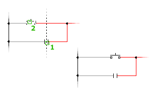 Функция быстрого перемещения позволяет быстро изменить расположение компонентов и сегментов проводов. Для перемещения отдельного компонента вдоль соединенных с ним проводов щелкните на этом компоненте. Соединения проводов сохраняются, а существующие номера проводов выравниваются по центру. Для быстрого перемещения звена многозвенной цепи вместе со всеми компонентами и номерами проводов щелкните на любом сегменте провода.