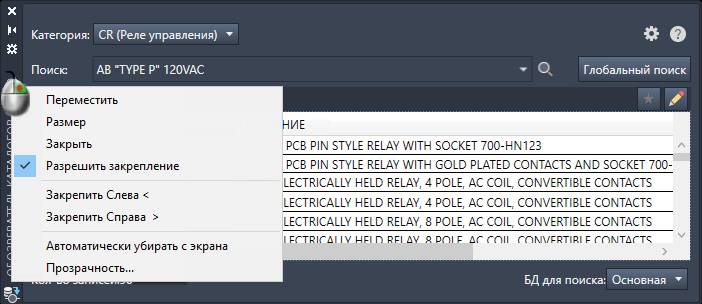 В Инструментарий AutoCAD Electrical палитры используются для управления проектами и для работы с базой данных каталога. Палитра может оставаться на экране во время использования других команд. Таким образом, палитра доступна в любой момент.