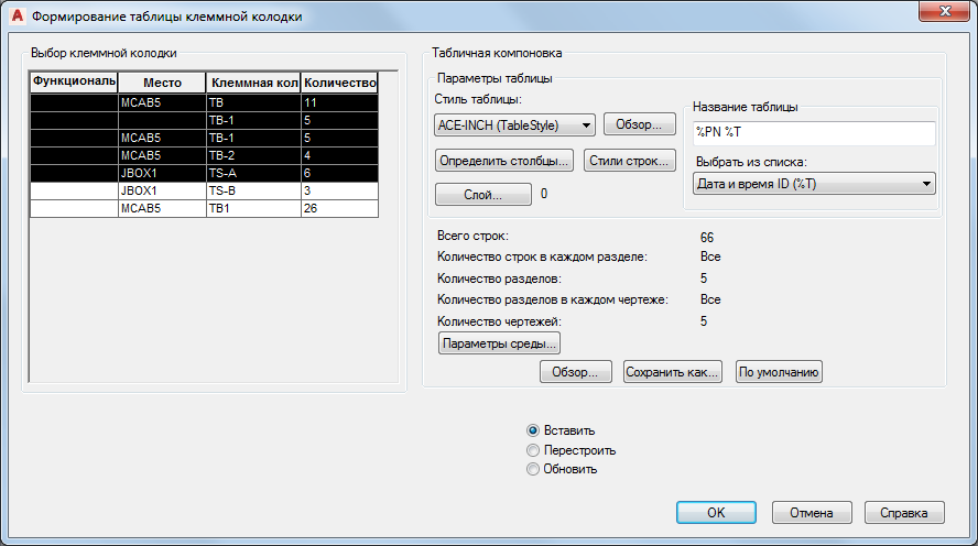 Если требуется вставить клеммные колодки в табличном представлении для одной или нескольких колодок, можно также использовать инструмент "Формирование таблицы клеммной колодки". найти