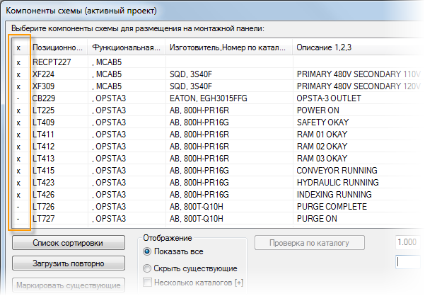 Компоненты монтажной панели обрабатываются в первую очередь, а затем осуществляется обработка компонентов схемы. Компоненты с аналогичным назначением каталожного номера получают аналогичную позицию.